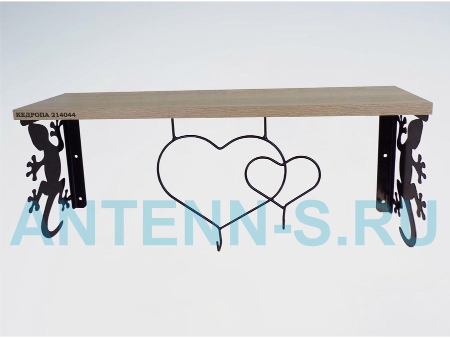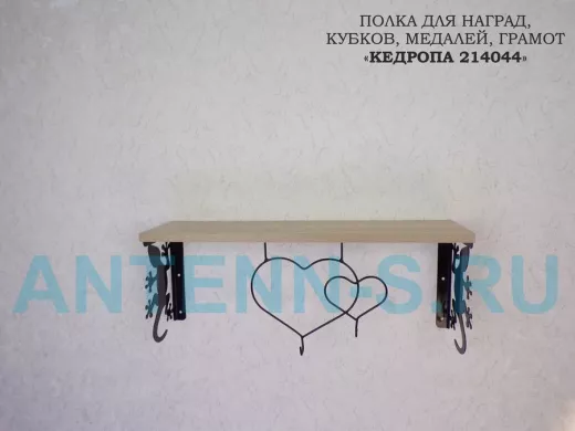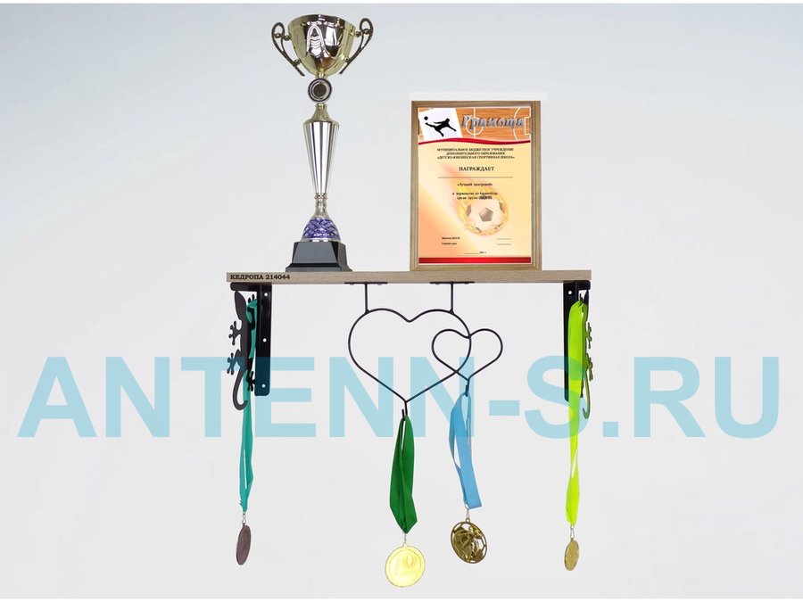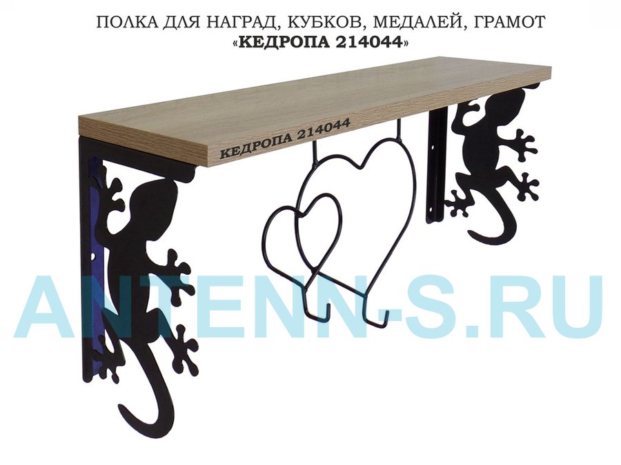 Полка для наград, кубков, медалей, грамот "КЕДРОПА-214044 гекон" размер 15х60х24 см, дуб с сердцем
