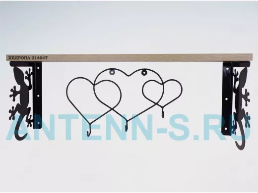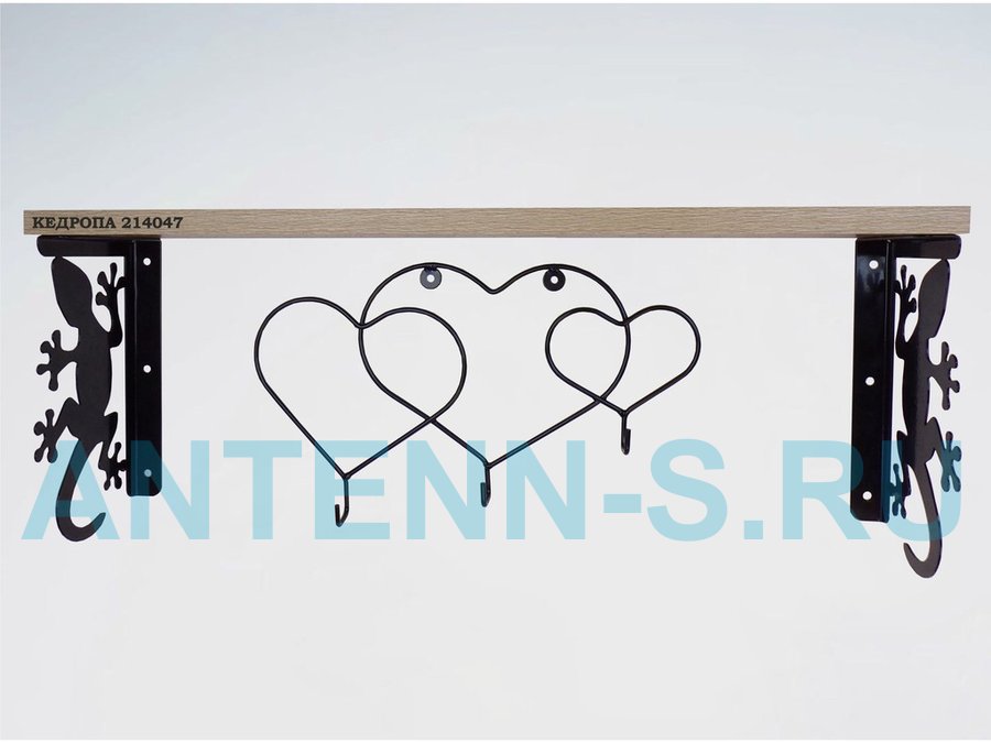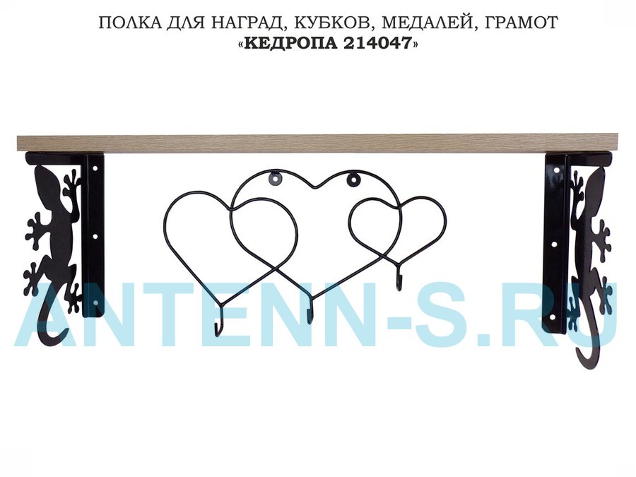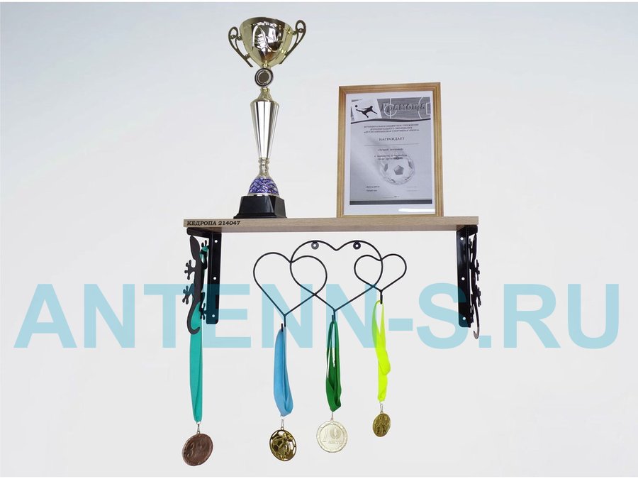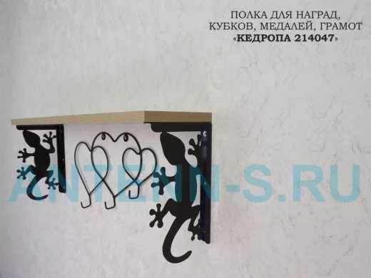 Полка для наград, кубков, медалей, грамот "КЕДРОПА-214047 гекон"размер 15х60х24 см, дуб с сердцами