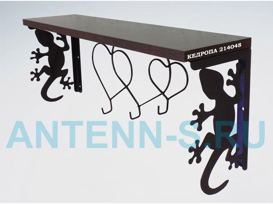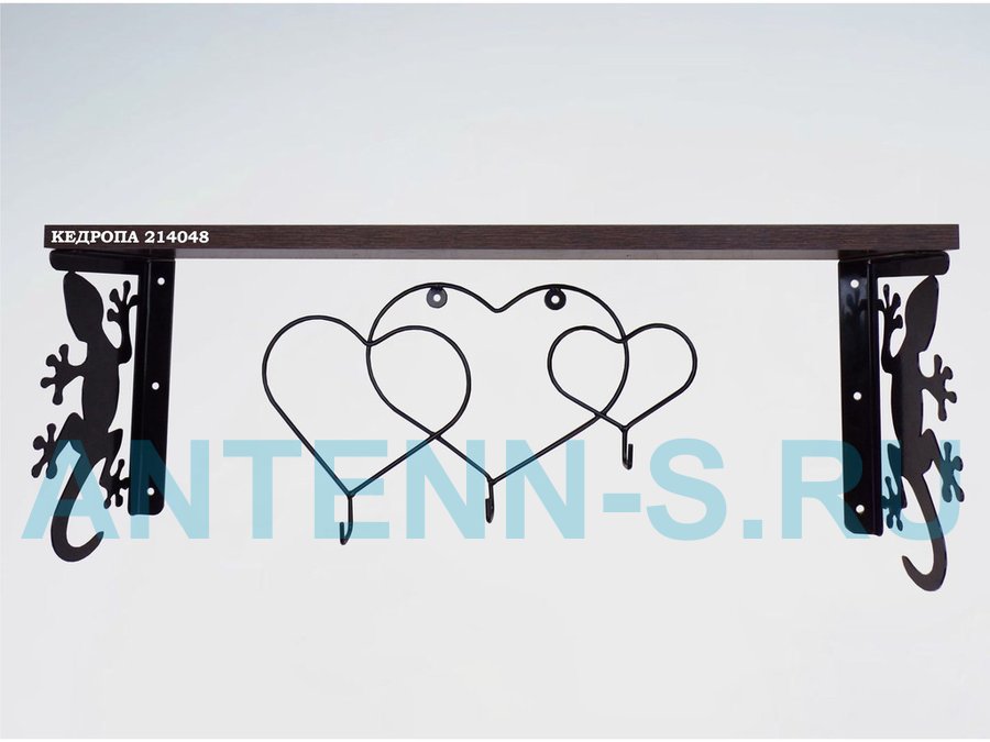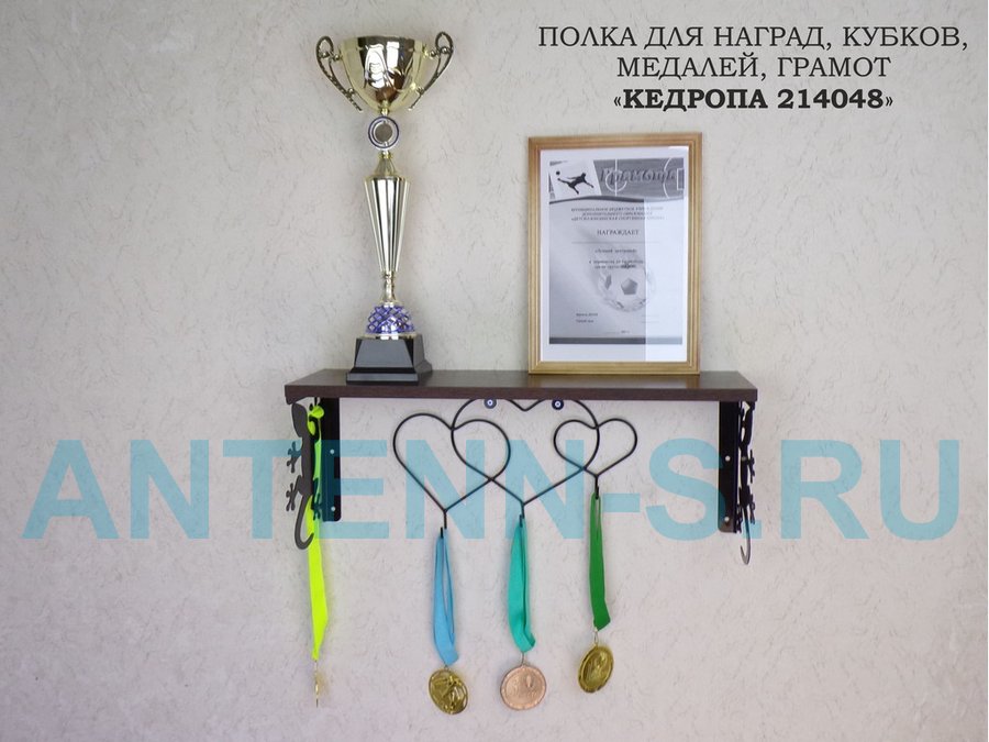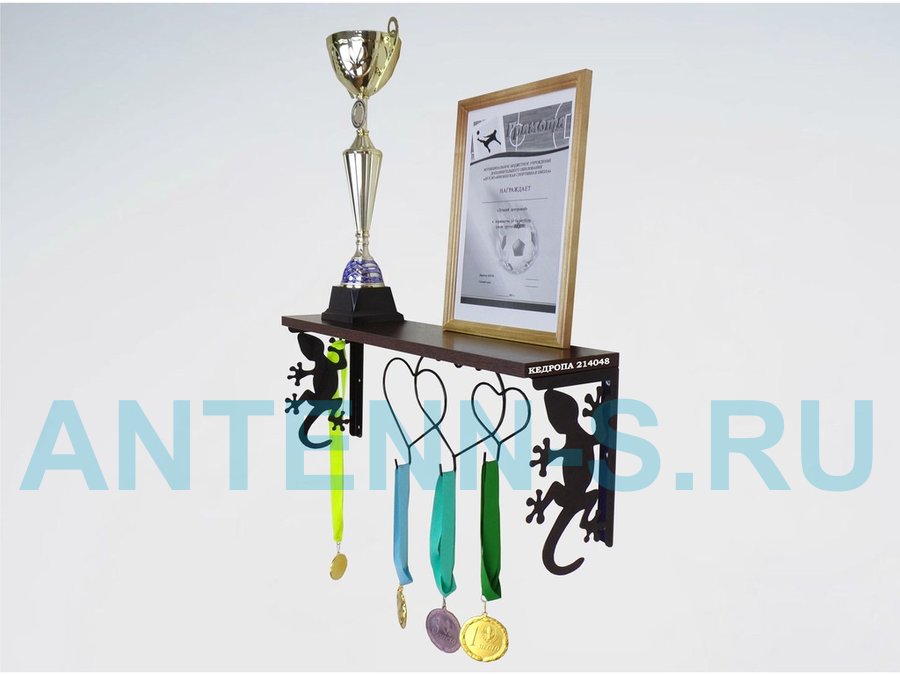 Полка для наград, кубков, медалей, грамот "КЕДРОПА-214048 гекон"размер 15х60х24 см, венге с сердцами