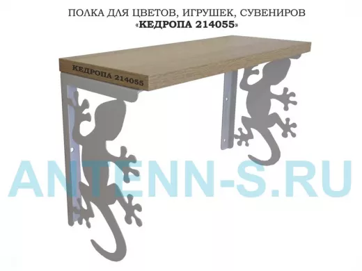 Полка для цветов, игрушек,сувениров "КЕДРОПА-214055 гекон" размер 15х40х24 см, серый, дуб сонома
