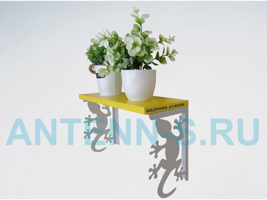 Полка для цветов, игрушек,сувениров "КЕДРОПА-214056 гекон" размер 15х40х24 см, серый, желтый