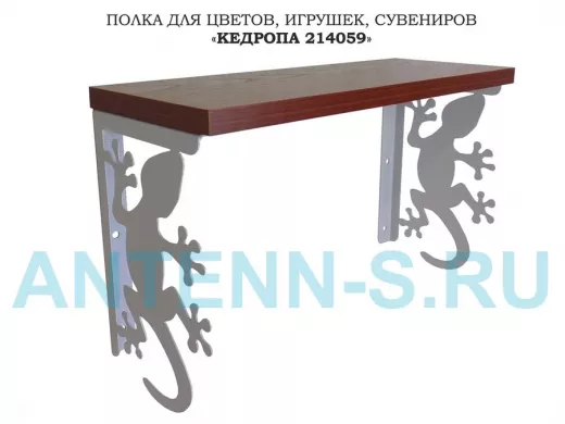 Полка для цветов, игрушек,сувениров "КЕДРОПА-214059 гекон" размер 15х40х24 см, серый, орех итал