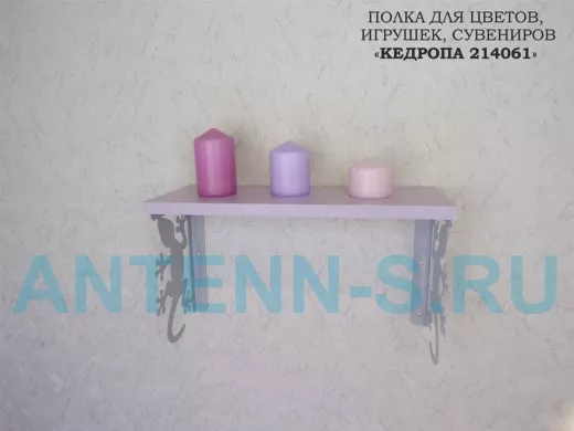 Полка для цветов, игрушек,сувениров "КЕДРОПА-214061 гекон" размер 15х40х24 см, серый, лаванда