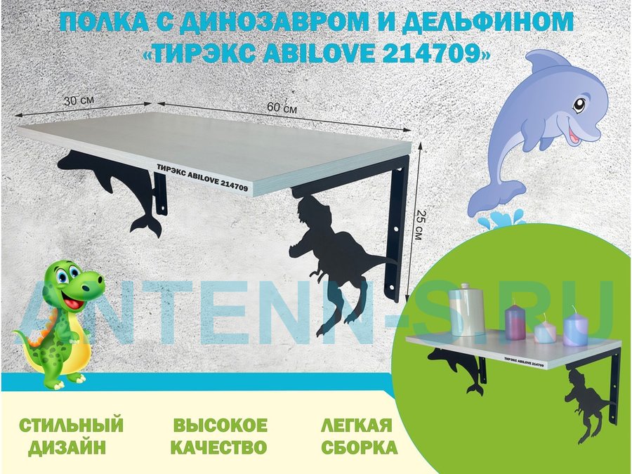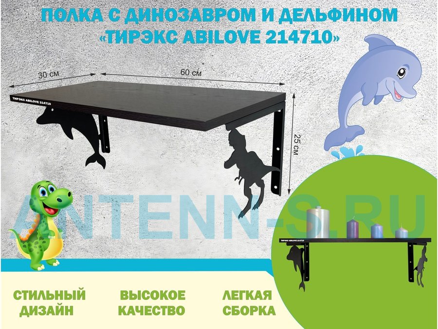 В корзину Купить в 1 клик Полка с динозавром и дельфином "ТИРЭКС ABILOVE-214710" для игрушек, венге, 30х60см