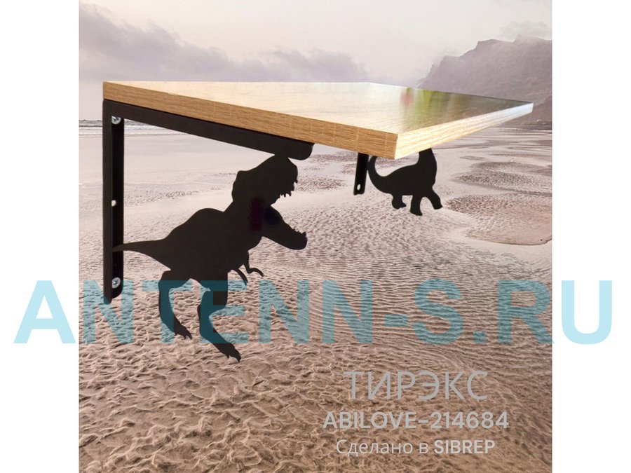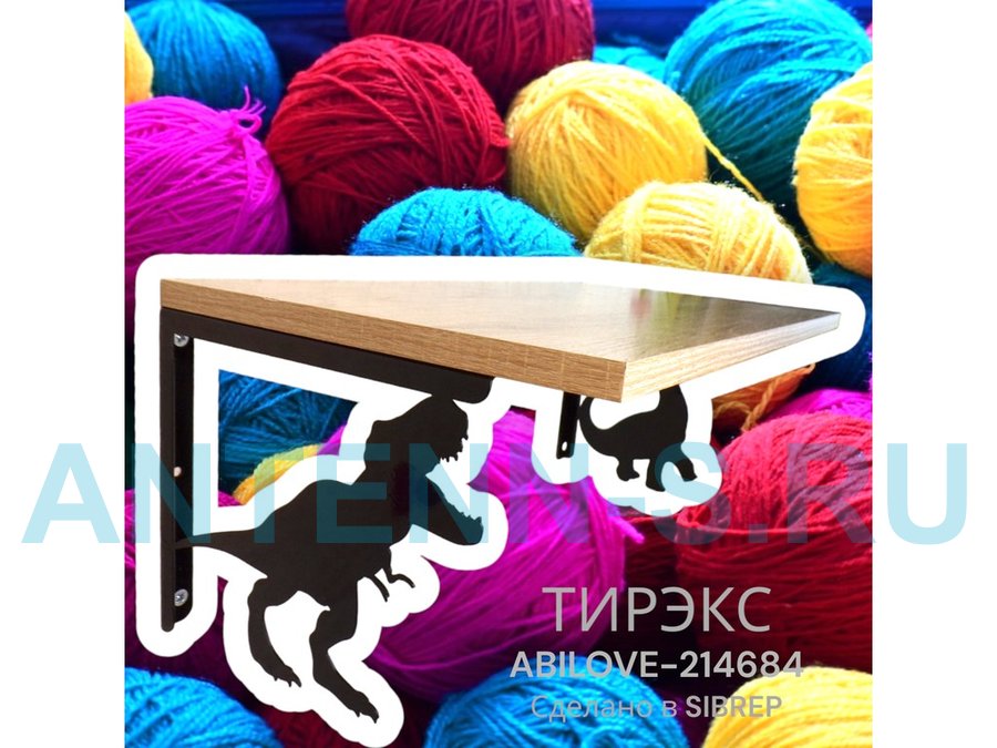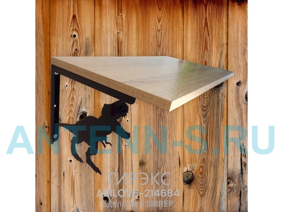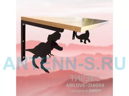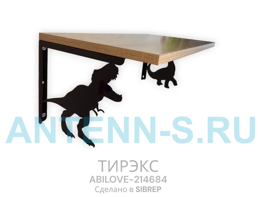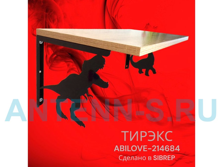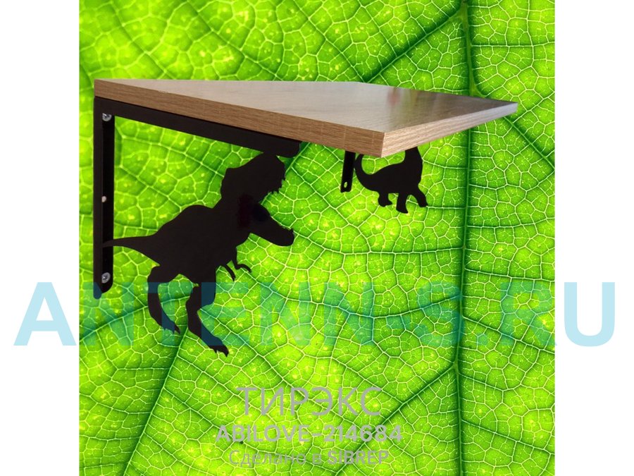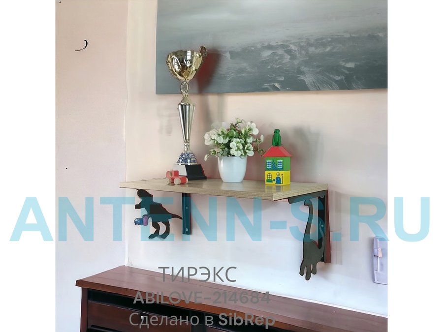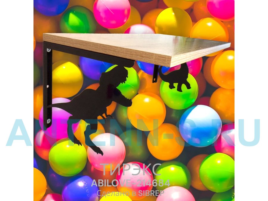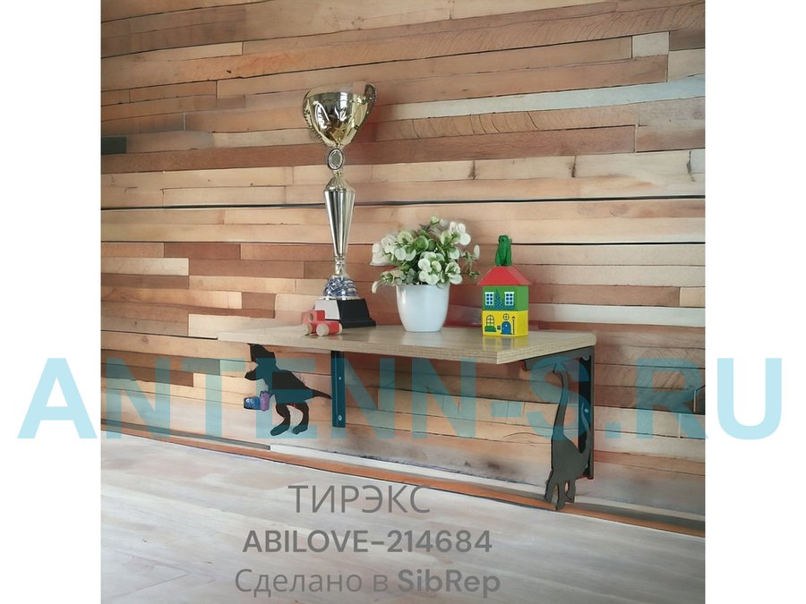 Полка с динозаврами "ТИРЭКС ABILOVE-214684" для конструкторов, машинок, дуб сонома, 30х60см