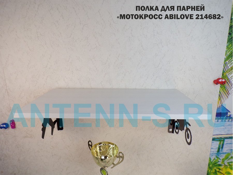 Полка для парней "МОТОКРОСС ABILOVE-214682" для кубков и аксессуаров, сосна выбеленная, 30х60см