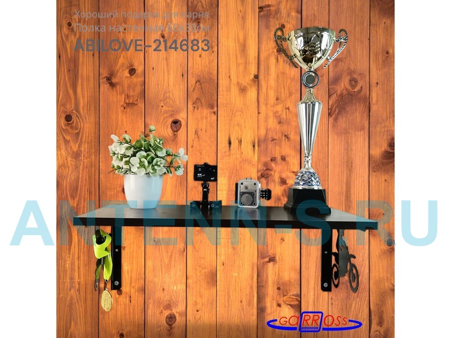 Полка для парней "МОТОКРОСС ABILOVE-214683" для кубков и аксессуаров, венге, 30х60см