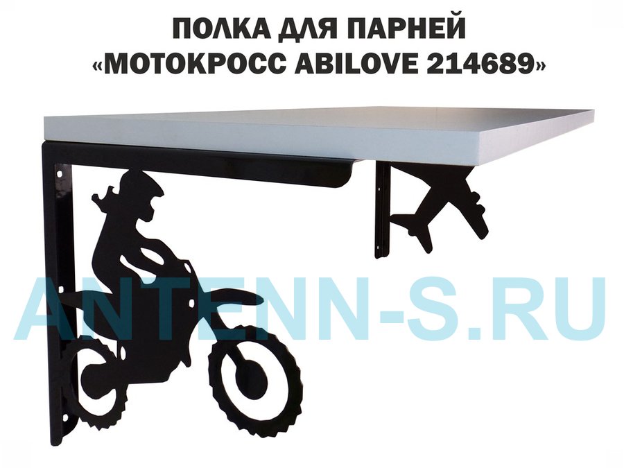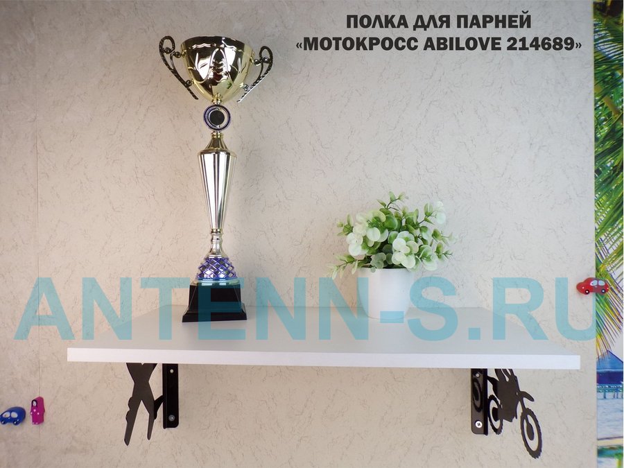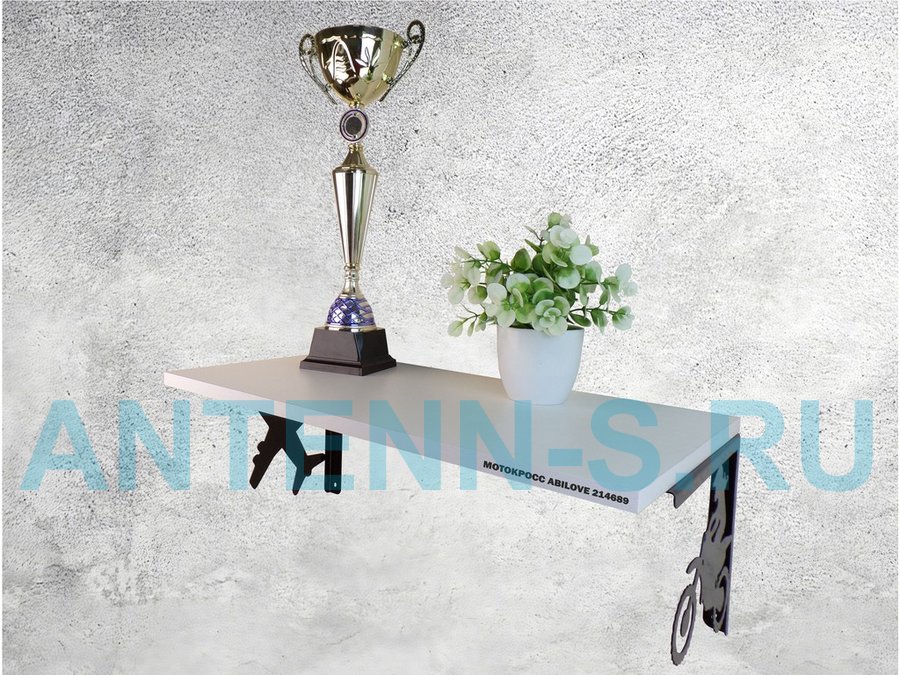 Полка для парней "МОТОКРОСС ABILOVE-214689" для кубков и аксессуаров, белая, 30х60см