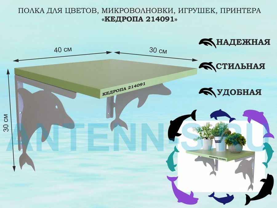 Полка для цветов, микроволновки, игрушек, принтера "КЕДРОПА-214106"размер 30х40x30 см, черный, салат