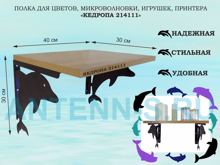 Полка для цветов, микроволновки, игрушек, принтера "КЕДРОПА-214111"размер 30х40x30 см, черный, дуб б