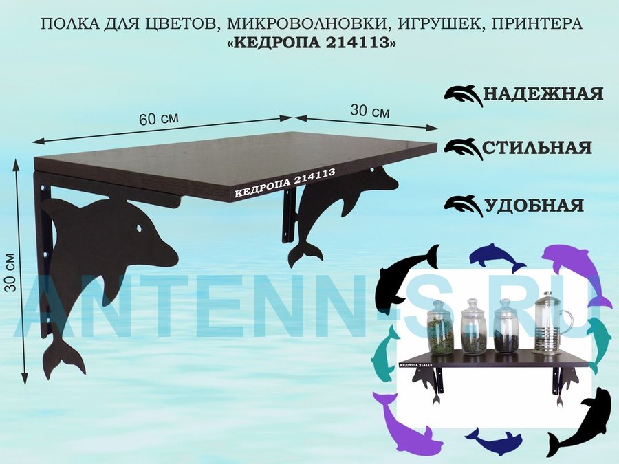 Полка для цветов, микроволновки, игрушек, принтера "КЕДРОПА-214114"размер 30х60x30 см, черный, сосна