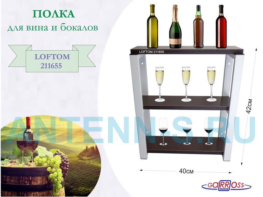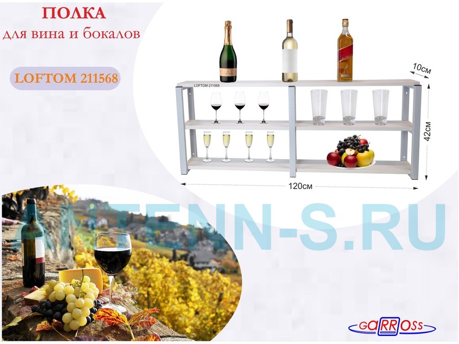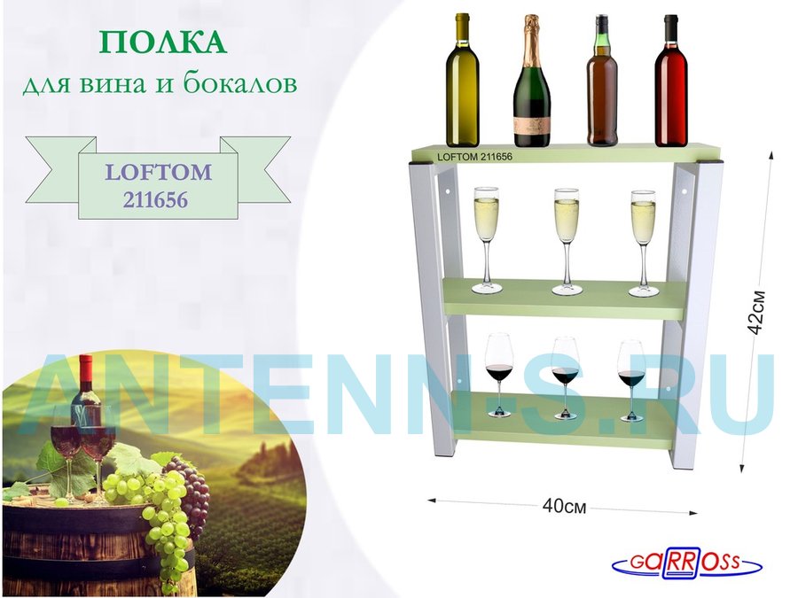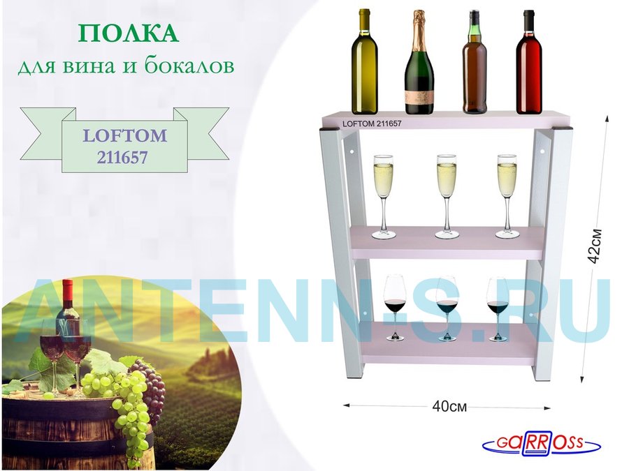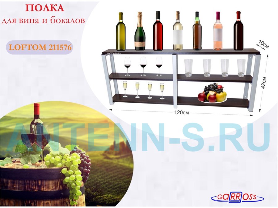 . Полки для вина и бокалов "LOFTOM" 3 уровня