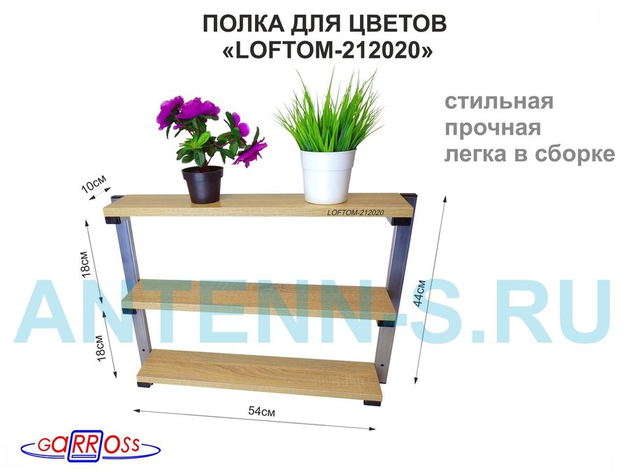 В корзину Купить в 1 клик Полка для цветов, высота 44 см, размер 10х54 см, 3 уровня, серебристая "LOFTOM 212020" дуб сонома