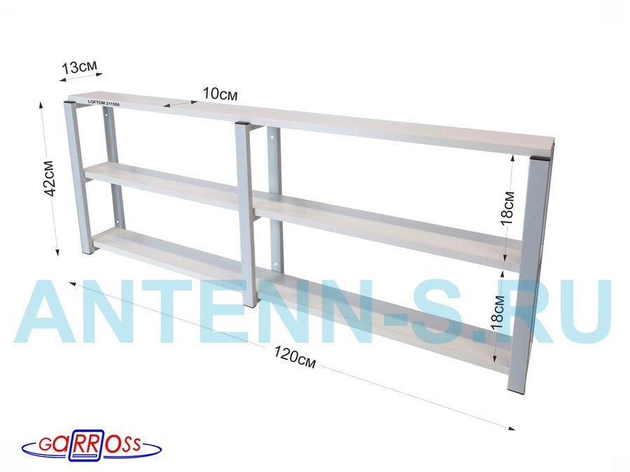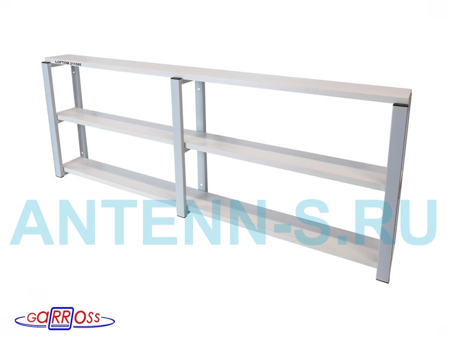 Полка для вина и бокалов, высота 42см, 3 уровня, размер 10х120см, серая "LOFTOM 211568" сосна