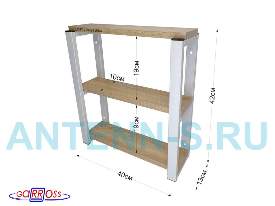 Полка для вина и бокалов, высота 42см, 3 уровня, размер 10х40см, серая "LOFTOM 211654" дуб