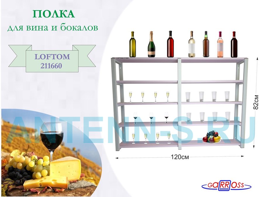 . Полки для вина и бокалов "LOFTOM" 5 уровней
