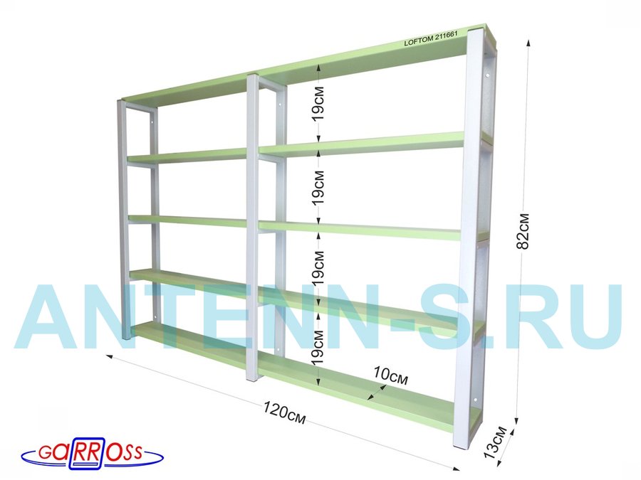 Полка для вина и бокалов, высота 82см, 5 уровней, размер 10х120см, серая "LOFTOM 211661" салатовый