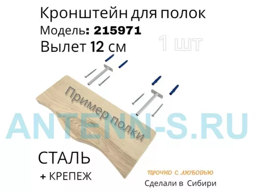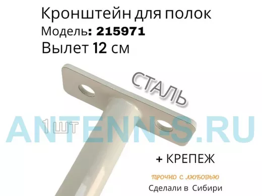 Кронштейн для скрытого крепления полок,12х120мм, серый, в наборе 1шт "SVORKAMAX-215971" без полки