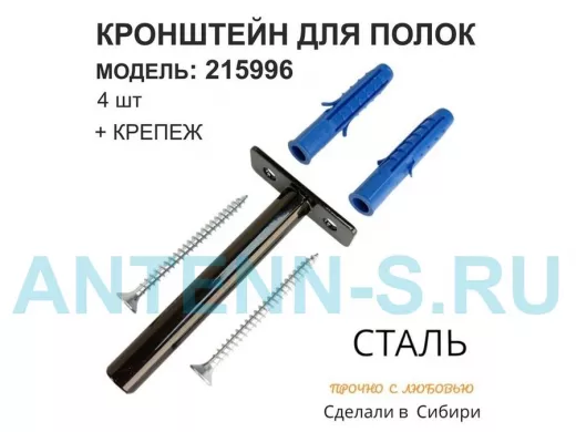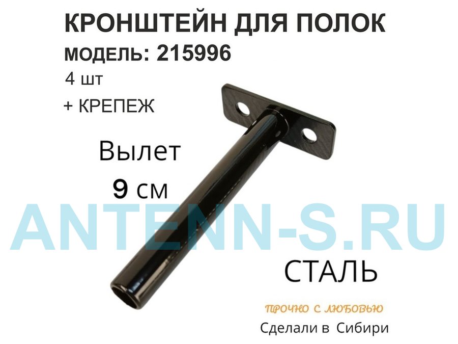 Кронштейн для скрытого крепления полок, 12х90мм, черный, в наборе 4шт "SVORKAMAX-215996" без полки