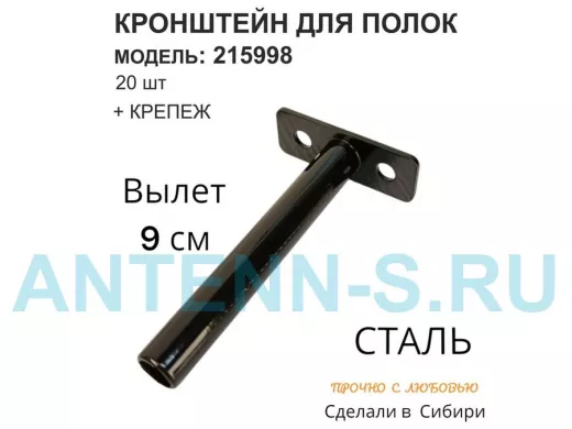 Кронштейн для скрытого крепления полок, 12х90мм, черный, в наборе 20шт "SVORKAMAX-215998" без полки