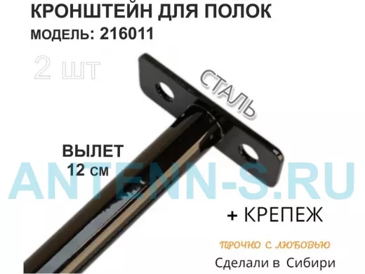 Кронштейн для скрытого крепления полок,12х120мм, черный, в наборе 2шт "SVORKAMAX-216011" без полки