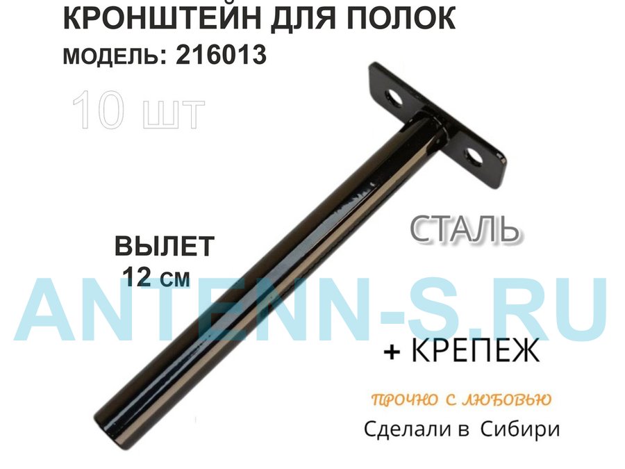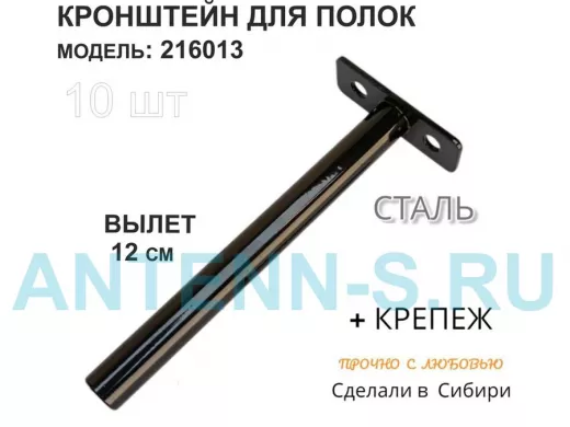 Кронштейн для скрытого крепления полок,12х120мм, черный, в наборе 10шт "SVORKAMAX-216013" без полки