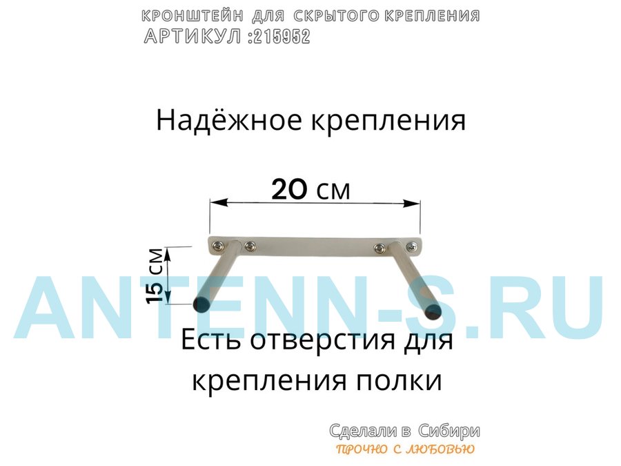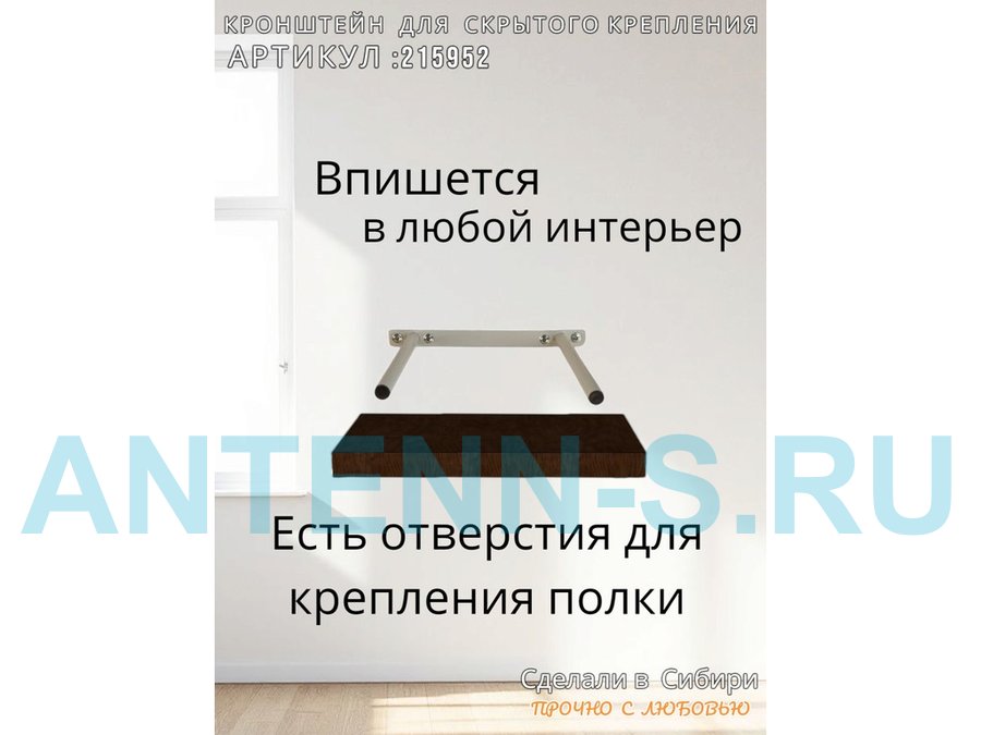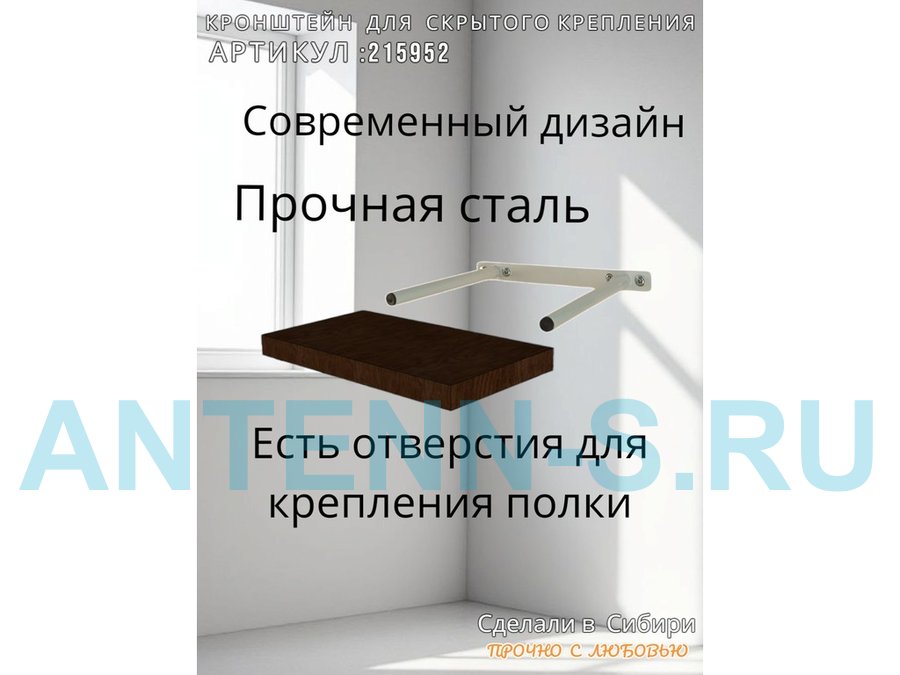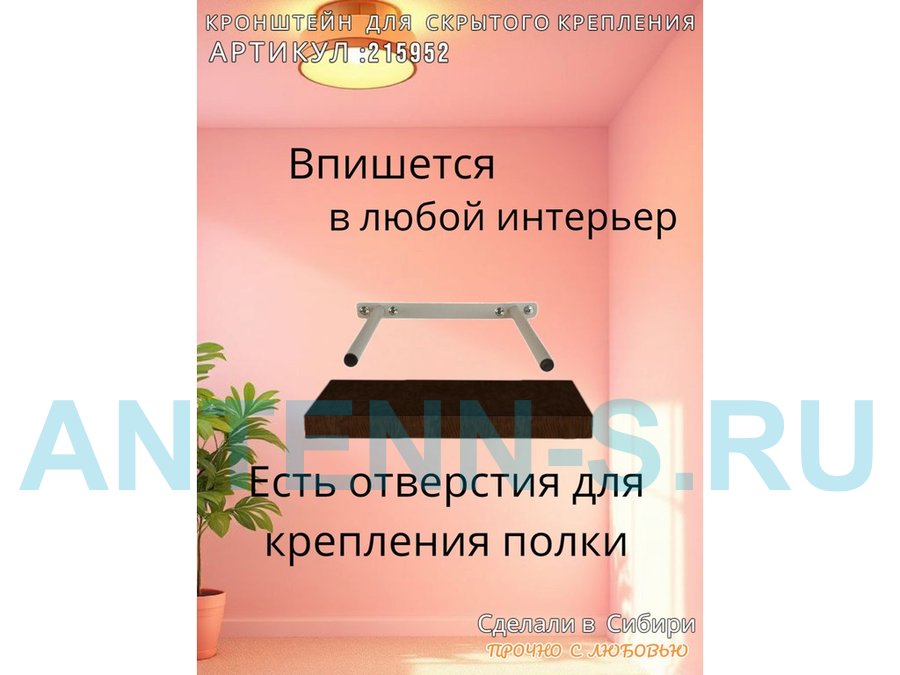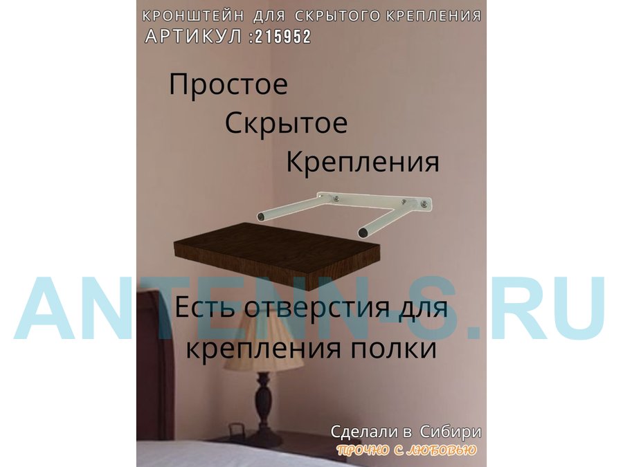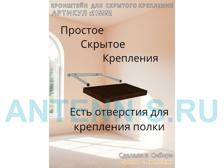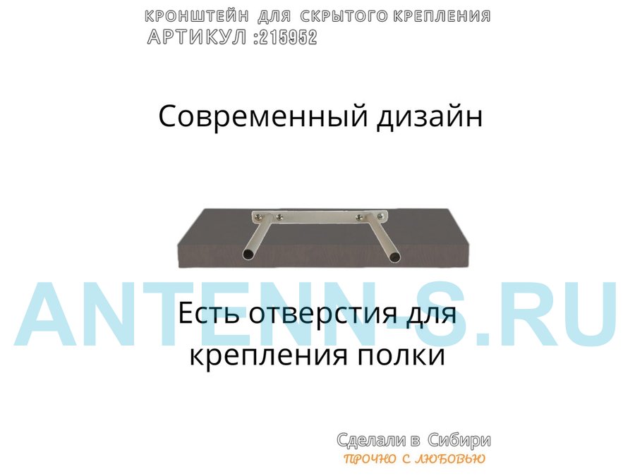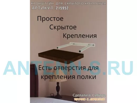 - Кронштейн предназначен для скрытого крепления полок, изготовленных из различных материалов: МДФ, ДСП, дерево, пластик.
