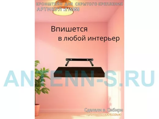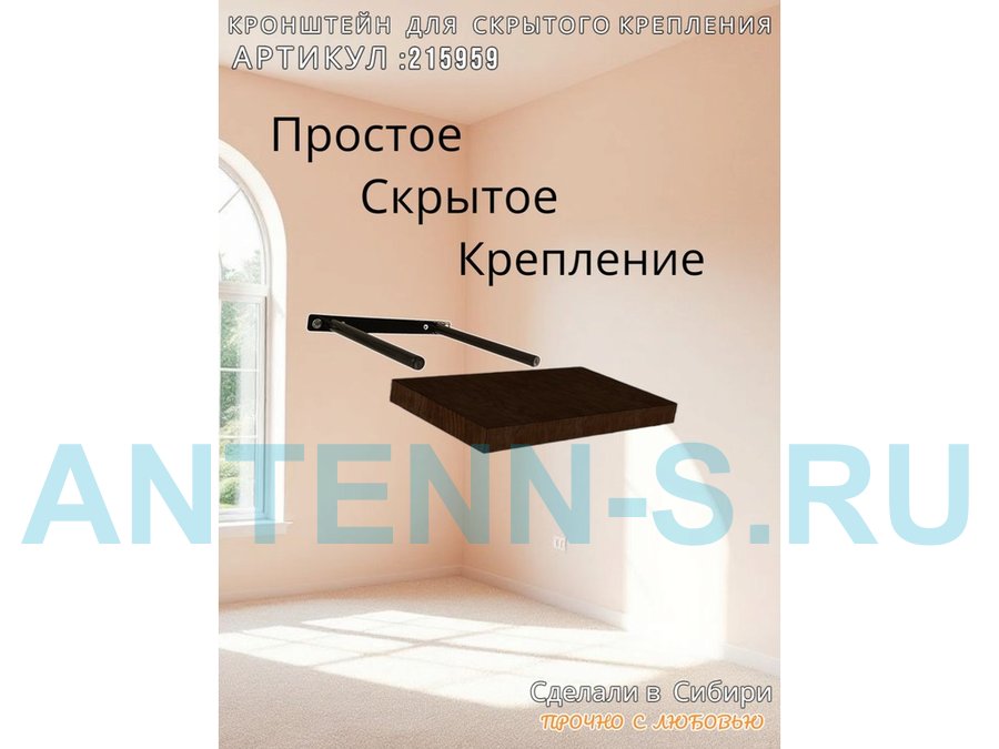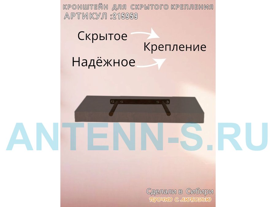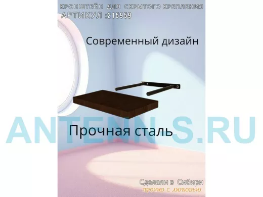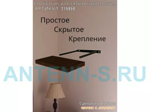 - Кронштейн предназначен для скрытого крепления полок, изготовленных из различных материалов: МДФ, ДСП, дерево, пластик.