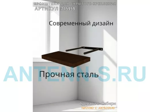 Кронштейн для скрытого крепления полок, 2х15см, черный, в наборе 1шт "SVORKAMAX-215959" ширина 20см