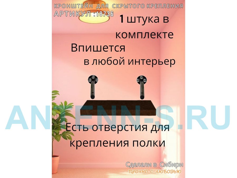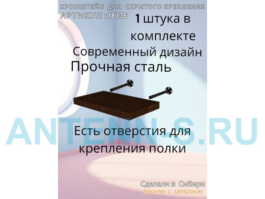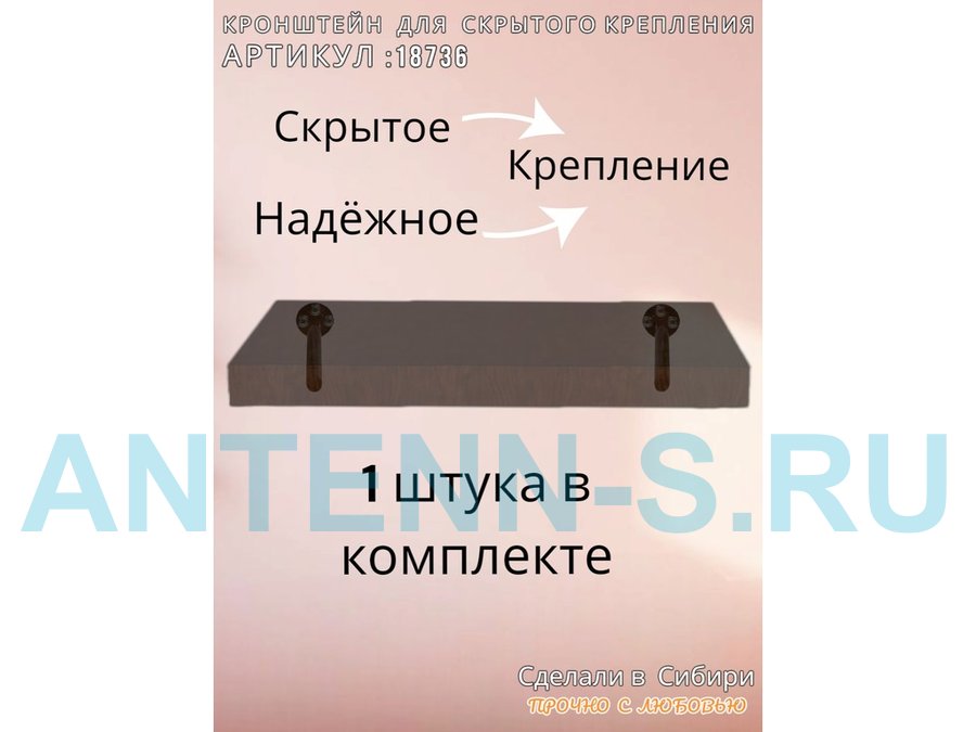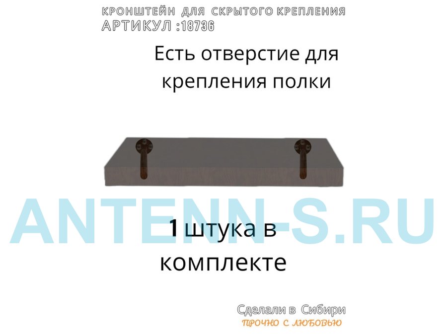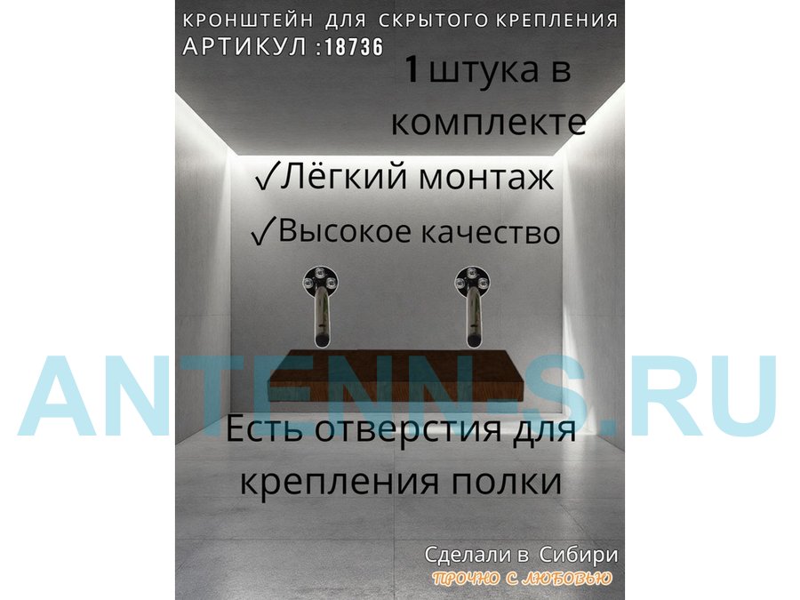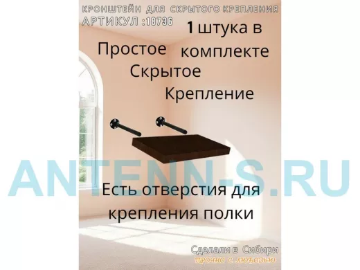 - Кронштейн предназначен для скрытого крепления полок, изготовленных из различных материалов: МДФ, ДСП, дерево, пластик.