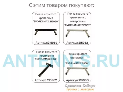 Кронштейн 1 шт для полок скрытого крепления, длина 150 мм с 5отверст. "SVORKAMAX-18736" 12мм, черный