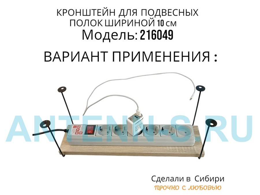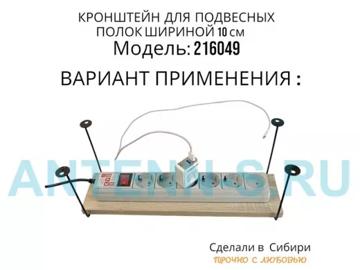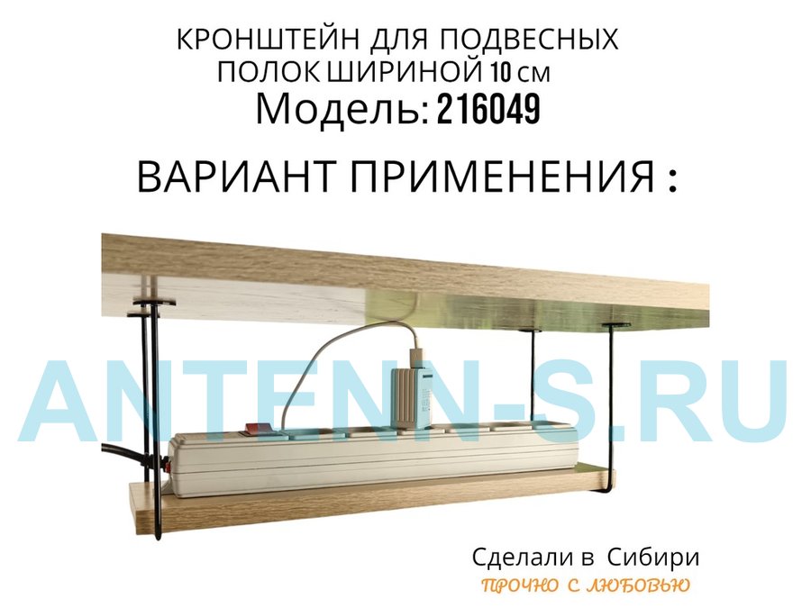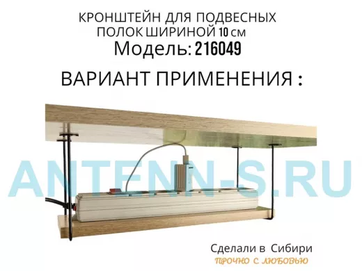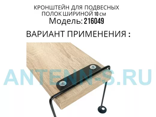Кронштейн для подвесной полки, высота 15см, ширина 12см, черный НАБОР 1шт "ПАПАОС 216049" стальной