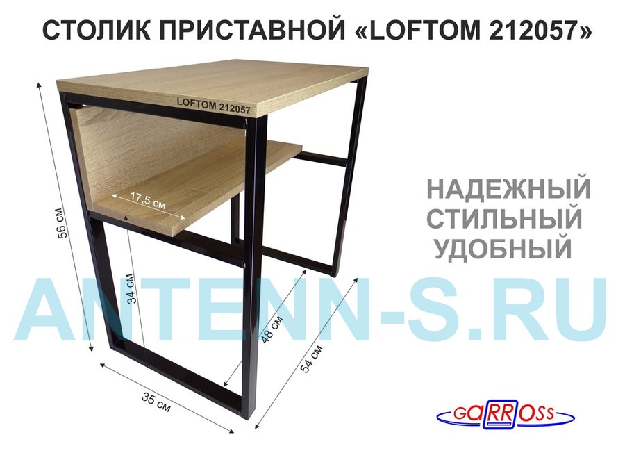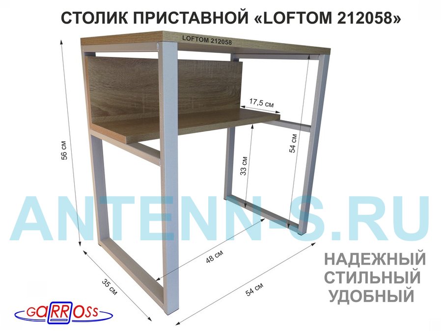 В корзину Купить в 1 клик Столик приставной 56см "LOFTOM 212060" прикроватный стол журнальный с одной полкой, серый, венге