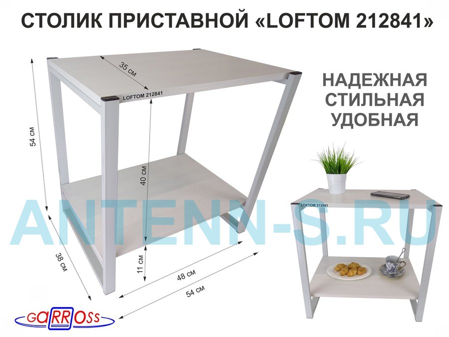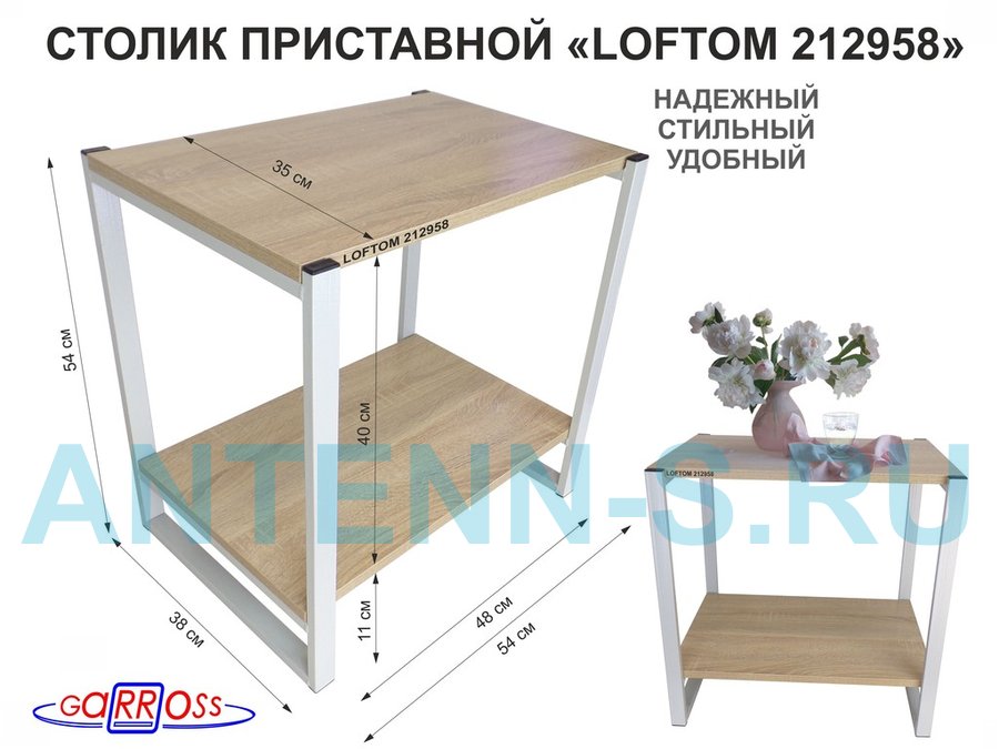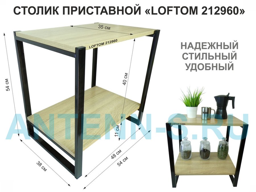 . Столики прикроватные, журнальные "LOFTOM" высотой 55 см с полкой, столешня 54х35 см