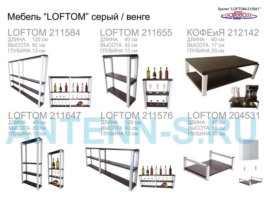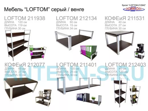 Столик приставной, серый, 55см "LOFTOM 212957" прикроватный стол журнальный с полкой, венге
