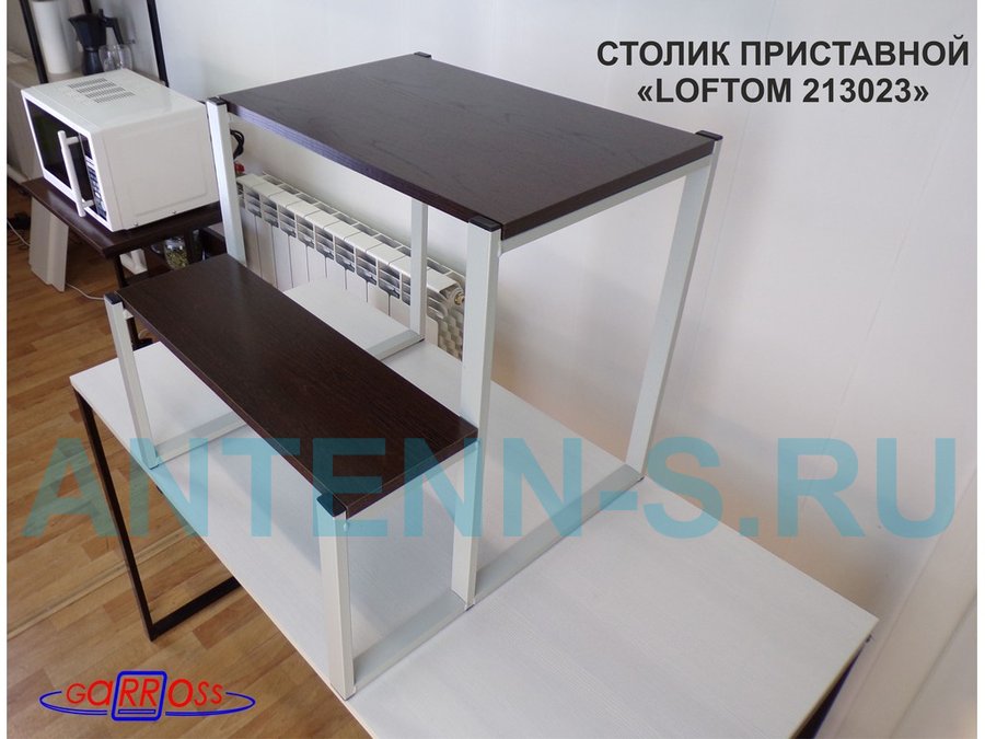 Столик приставной, серый, 55см и 31см "LOFTOM 213023" прикроватный стол с двумя уровнями, венге