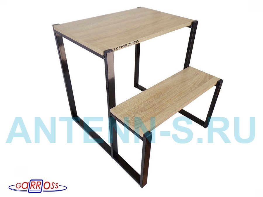 Столик приставной, черный, 55см и 31см "LOFTOM 213025" прикроватный стол с двумя уровнями,дуб сонома