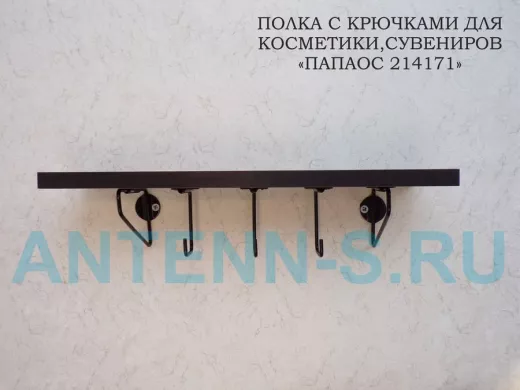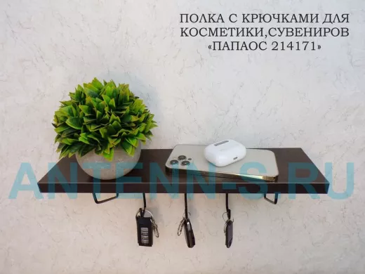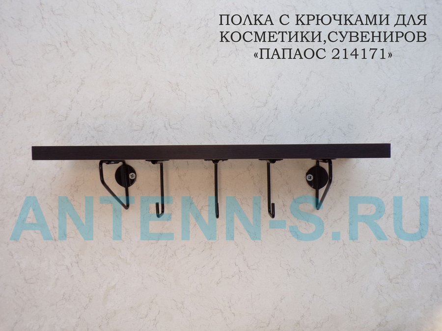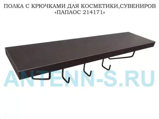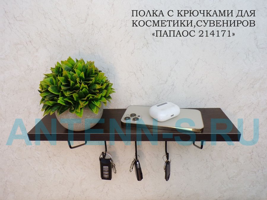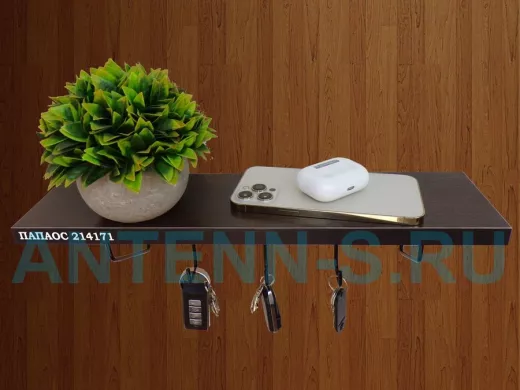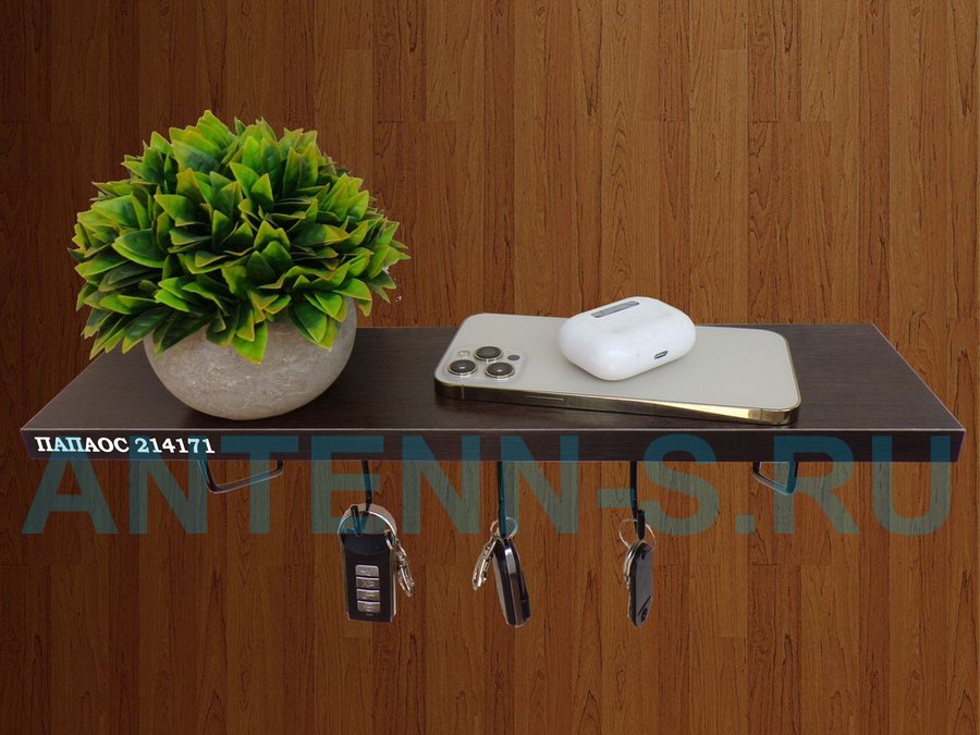 Ключница, полка с крючками в прихожую 40х10 см, высота 9 см, черный "ПАПАОС 214171" венге