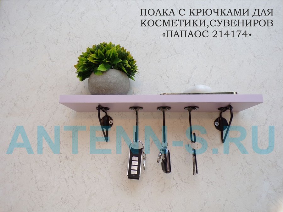 Ключница, полка с крючками в прихожую 40х10 см, высота 9 см, черный "ПАПАОС 214174" лаванда