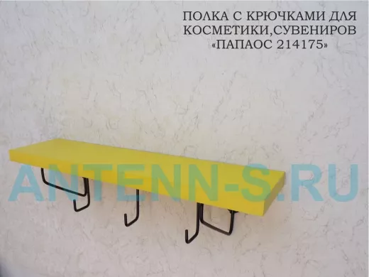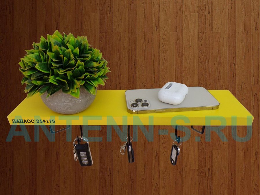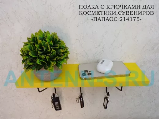 Ключница, полка с крючками в прихожую 40х10 см, высота 9 см, черный "ПАПАОС 214175" желтый