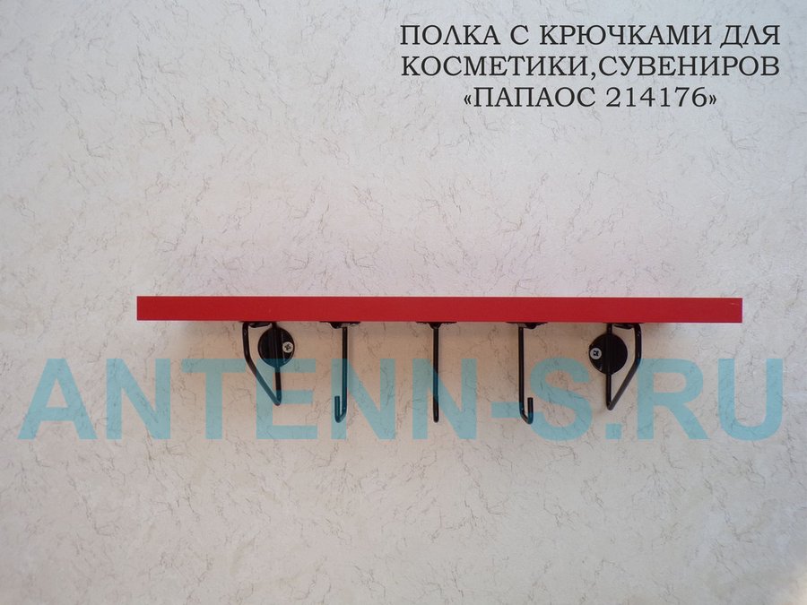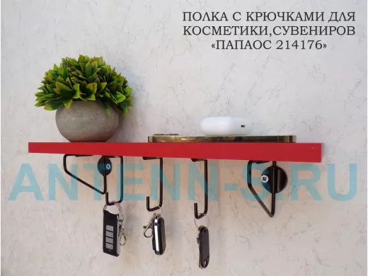 Ключница, полка с крючками в прихожую 40х10 см, высота 9 см, черный "ПАПАОС 214176" красный