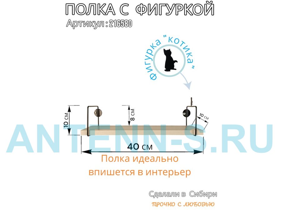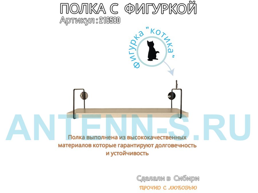Полка с фигуркой котика "ABILOVE-216580" размер 10х40см ,черный ,сосна выбеленная