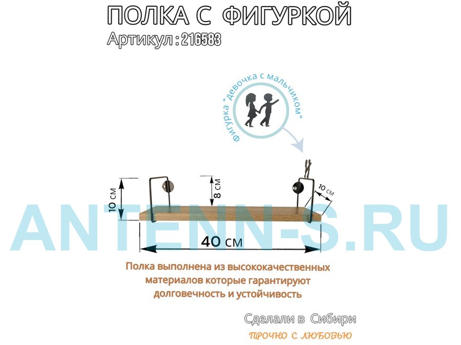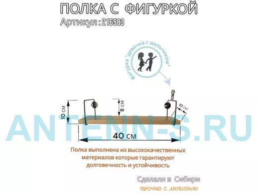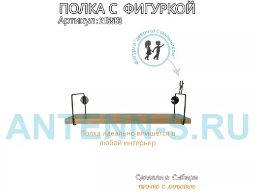 Полка с фигуркой девочки с мальчиком "ABILOVE-216583" размер 10х40см ,черный ,дуб сонома