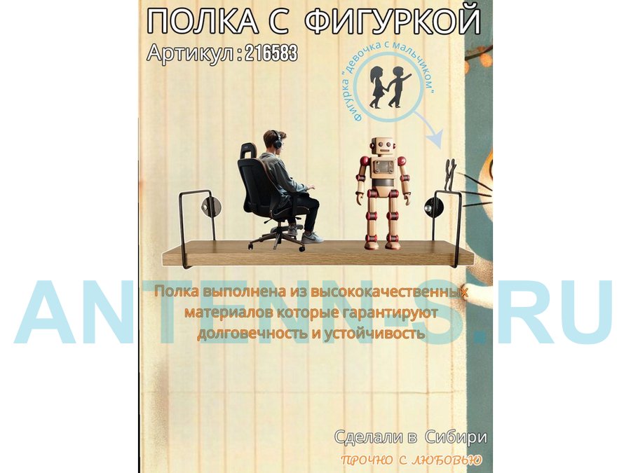 Интересная полка с фигуркой, позволит разнообразить интерьер, сделать его непохожим, уникальным, запоминающимся.