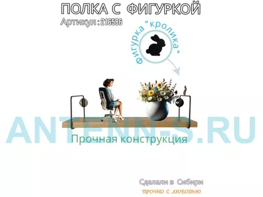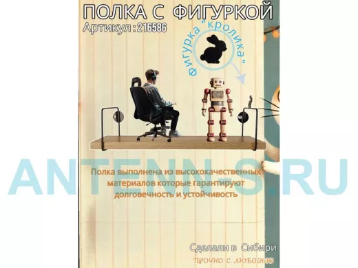 Полка с фигуркой кролика "ABILOVE-216586" размер 10х40см ,черный ,дуб сонома