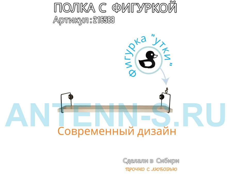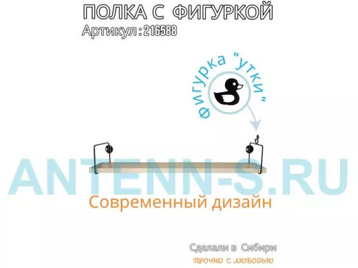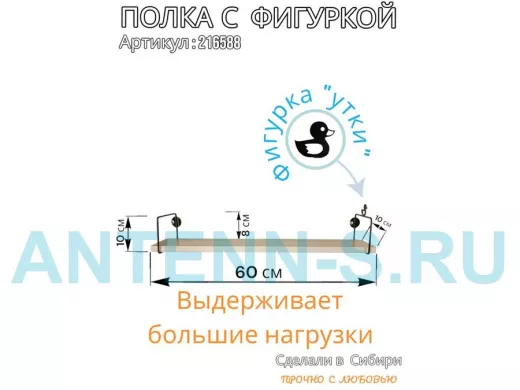 Полка с фигуркой утки "ABILOVE-216588" размер 10х60см ,черный ,сосна выбеленная