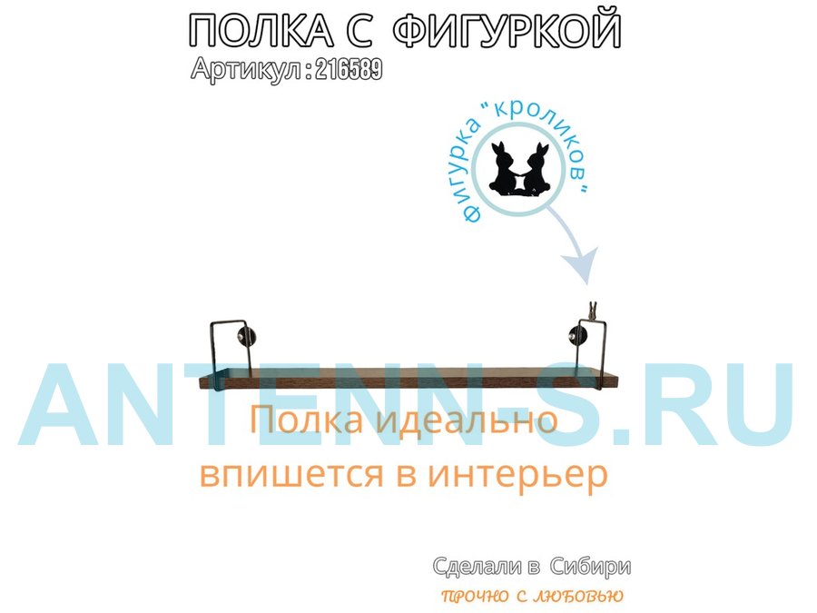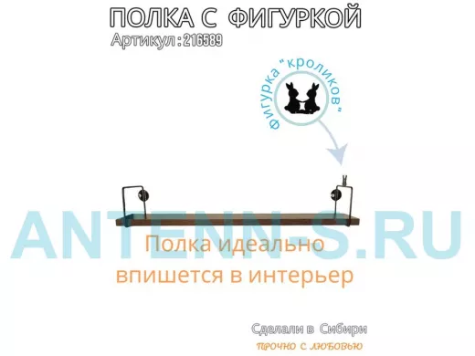 Полка с фигуркой кроликов "ABILOVE-216589" размер 10х60см ,черный ,венге