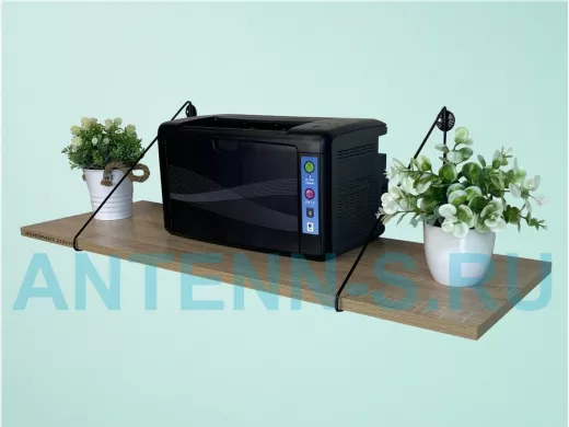 - Полка надежно крепится к стене при помощи анкеров или шурупов с дюбелями, на ней можно разместить принтер, бумагу