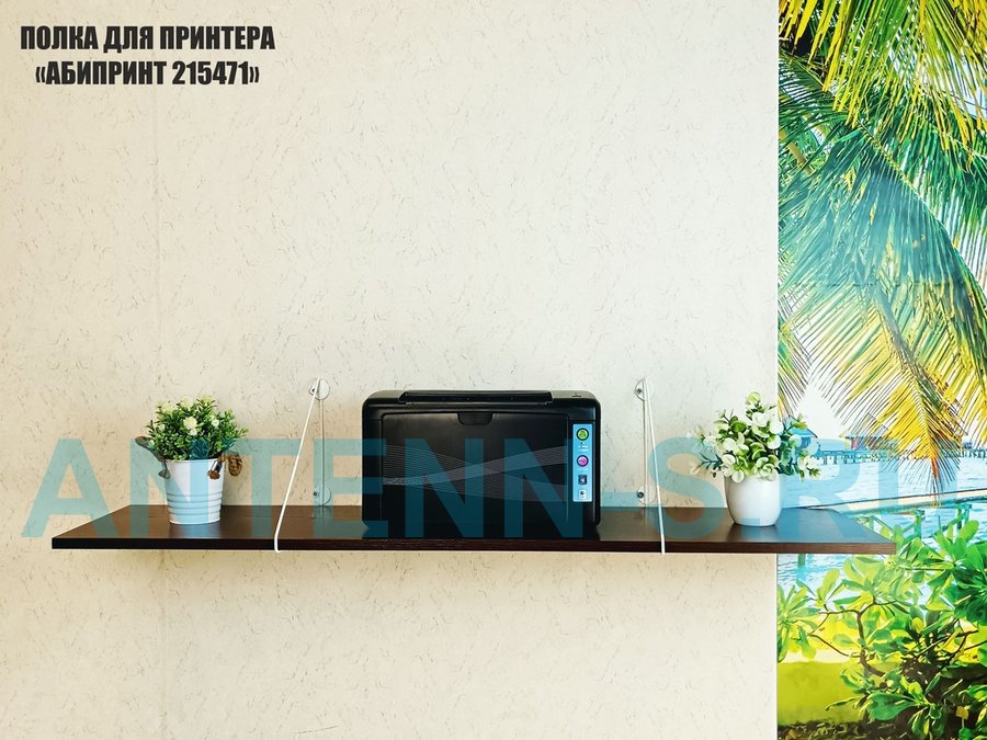 - Полка надежно крепится к стене при помощи анкеров или шурупов с дюбелями, на ней можно разместить принтер, бумагу