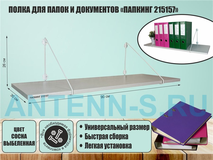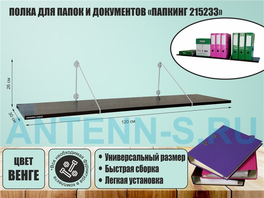 Полка для папок и документов "ПАПКИНГ 215060" высота 26 см размер 60х30 см черный и сосна выбеленная